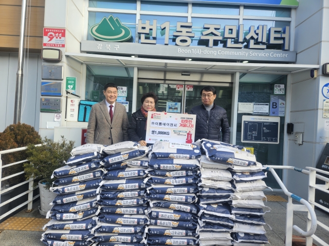 ▲(주)이룸에이앤씨와 정성욱 동장(우)과 함께한 모습 연말연시를 맞아 소외계층을 따뜻하게 감싸 안기 위해 나눔의 마음을 실천하고 있는 (주..